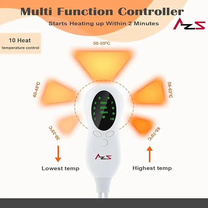 - 【RAPID HEATING TECHNOLOGY】 Experience fast heating with 10 levels of temperature adjustment ranging from 30°C to 70°C. Set your ideal temperature freely and reach it within 2 minutes for quick pain relief and convenience.