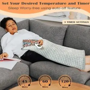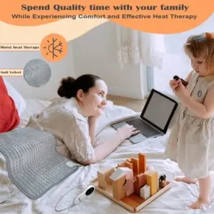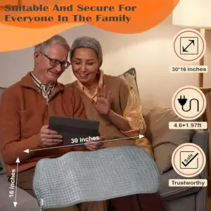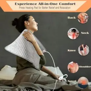 - 【KING SIZE & FULL BODY PAIN RELIEF】 XXL king-size heating pad measuring 30″x16″ covers shoulders, abdomen, back, neck, legs, knees, and more. Designed to keep your body warm, increase blood circulation, soothe tense muscles, and aid healing of injured tissues. Also relieves menstrual pain and cramps.